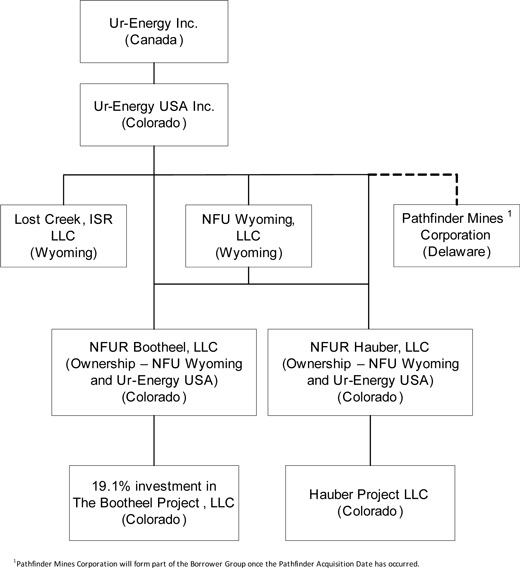 1 Under the facility agreement dated [insert details] between Ur-Energy USA Inc. (as Borrower), Ur-Energy Inc. (as Parent), Lost Creek ISR, LLC (Lost Creek), RMB Australia Holdings Limited (as Financier) and RMB Resources, a division of FirstRand Bank Limited (London Branch) (as Agent) (Facility Agreement), a person may become a Guarantor by execution of this agreement.