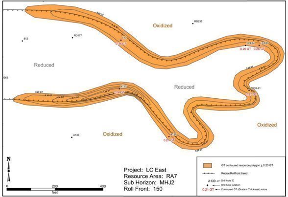 The resources contained within the HJ horizon in the northern extremes of the LC East Project are shallow and portions of the aquifer is unconfined. The limited hydraulic head over the resources may make ISR extraction of HJ mineralization difficult in this area. As shown on Figure 9, only a very small portion of the HJ resources is located in the northern portion of LC East. The reduced head above the resource only affects a very small percentage of the LC East resources and is not expected to significantly impact total recoveries. Furthermore, there is currently no planned HJ RA in this portion of LC East and potential mining activity here will be focused in the KM Horizon, which remains under suitably confined groundwater conditions.