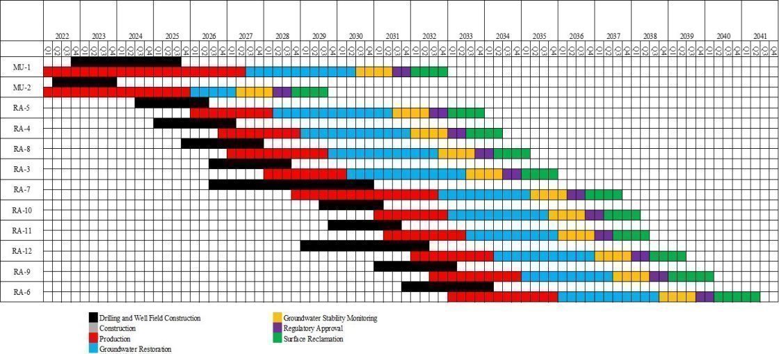 To realize the full potential benefits described in this Report, all aspects of operations and further wellfield development should be continued as market conditions warrant. Wellfields must be developed in advance of future production including further development of MU2 and MU1 as well as future wellfields in other RAs. Data obtained from wellfield development should be used to continue to reconcile and improve the Property mineral resource estimate. Wellfield development costs are based upon operations to date and are included in the OPEX and CAPEX estimates and financial projections presented herein.