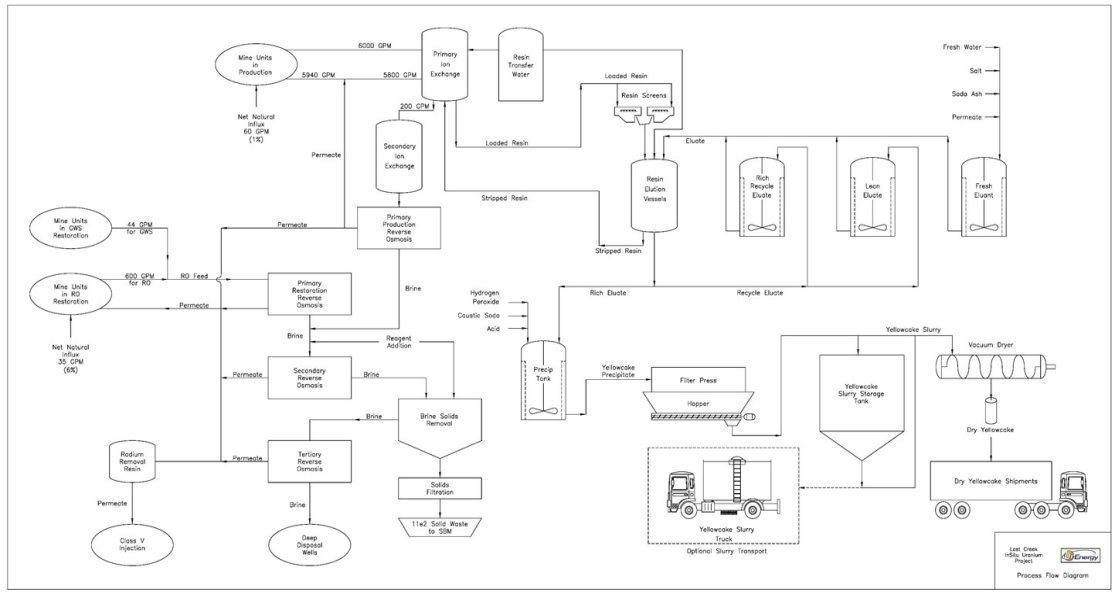 The IX and elution processes have been, and are being used not only at Lost Creek, but at other ISR facilities in Wyoming, Texas, and Nebraska. The process does not use any unusual methods and the reagents for the process are readily available from regional sources. Process optimization to minimize the use of reagents, minimize loss of product and ensure proper product quality is ongoing.
