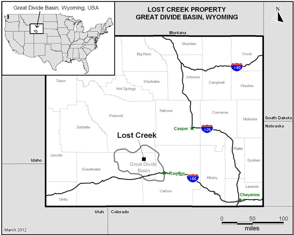 The Corporation currently controls a total of 2,181 unpatented mining claims and four State of Wyoming sections for a total of approximately 43,500 mineral acres (17,600 hectares) in the area of Lost Creek, including the Lost Creek permit area (the “Lost Creek Project”) and certain adjoining properties comprising LC North, LC South, EN and Toby project areas (collectively, with the Lost Creek Project, the “Lost Creek Property”). This land status description represents an increase attributable to the location of some 253 additional unpatented mining claims, in total, at the LC North and LC South Projects, and the recent acquisition of property interests contiguous to the southeast, north and southwest boundaries of the Lost Creek Project. This latter acquisition of approximately 5,250 acres (2,125 hectares) (175 federal mining claims and two State of Wyoming mineral leases) resulted from an asset exchange agreement announced in February 2012 in which the Corporation exchanged an historic mineral database for the property interests and data related to the property.